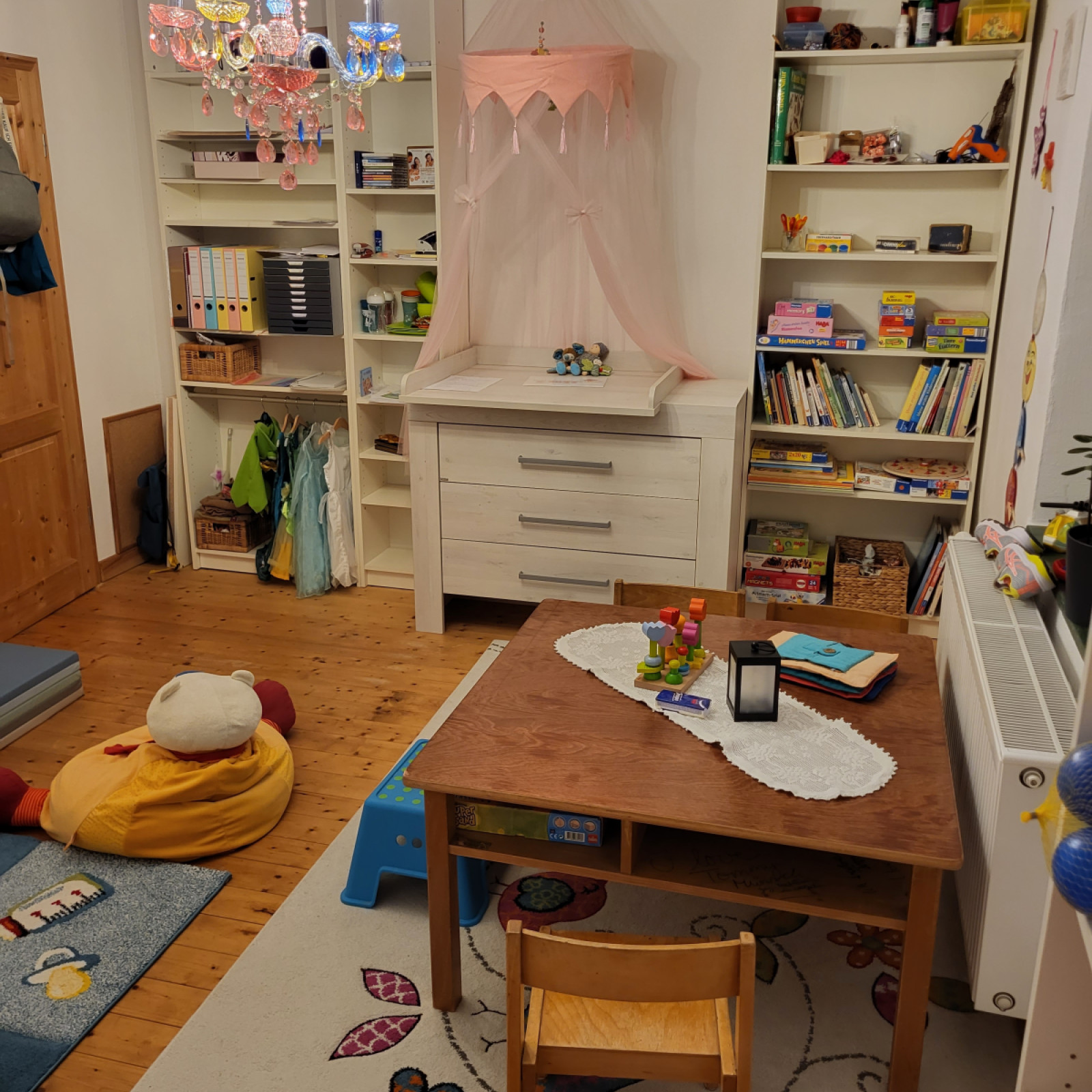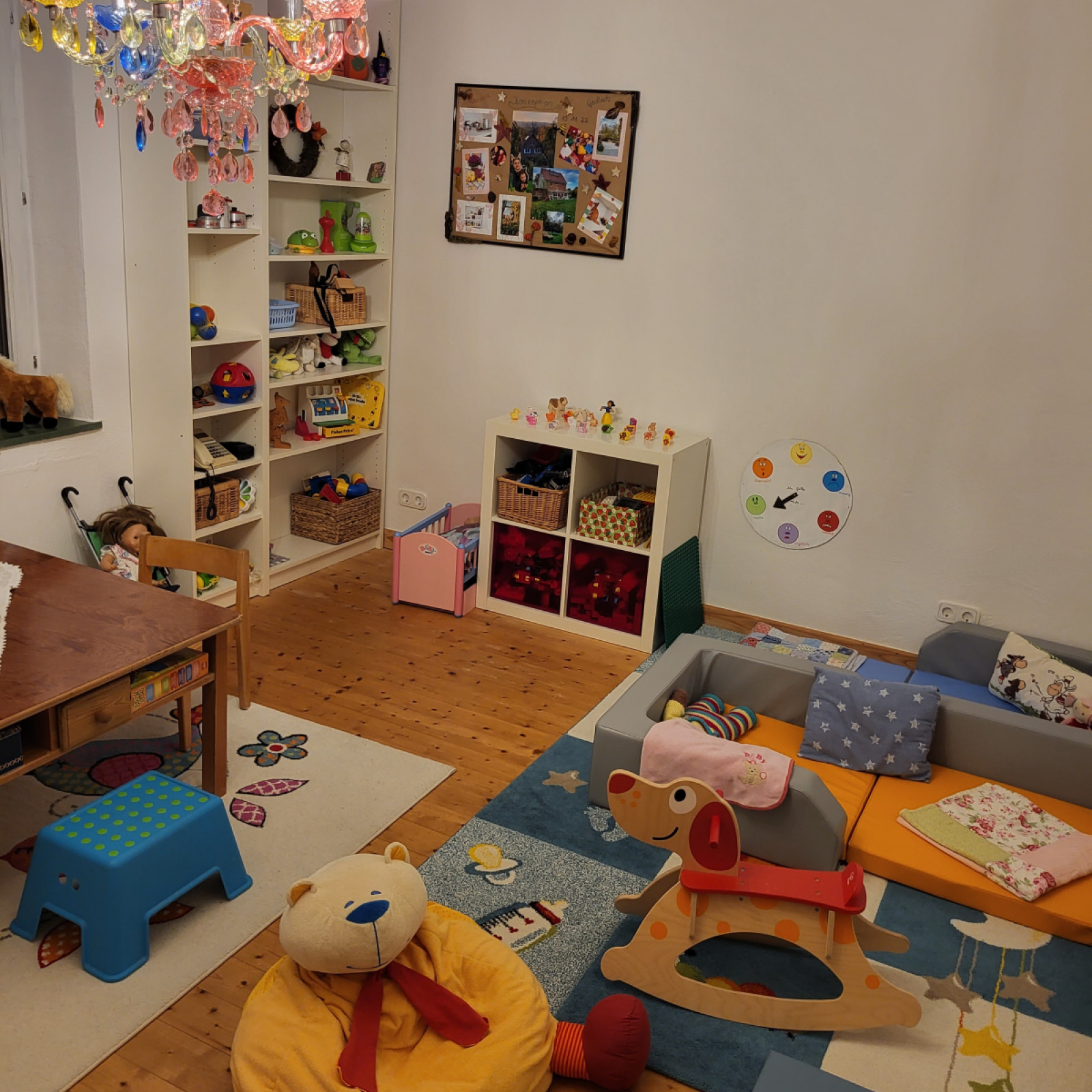 Es gibt folgende Besonderheiten: 15m² Raum, wir befinden uns auf unserem Hof mit 1200m² Grundstück, Besuch bei den Hühnern, Laufenten, Wachteln, Pferden und Schafen sind möglich, Im Garten ist viel Platz zum austoben. Nachhaltig und eher nach Montessori arbeite ich